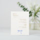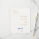 This chic and simple wedding RSVP response card features a blue ribbon bow watercolor illustration, a contemporary font in imitation gold,against an off white background and RSVP details. See full range of complimentary wedding stationary and supplies in the collection.