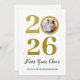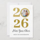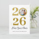 Trendy Elegant Script Happy New Year One Photo Holiday Card