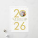 Trendy Elegant Script Happy New Year One Photo Holiday Card