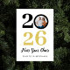 Trendy Elegant Script Happy New Year One Photo Holiday Card