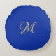 Trendy Elegant Solid Royal Blue Name Monogram Round Cushion