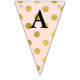 This stylish, glam bunting is made up of trendy patterns of chevron, stripes, and polka dots all in a faux gold on a blush pink background. As shown, the bunting says "congratulations." However, if you would like to change the text, there is a template you can use to easily change the letters. Perfect for any elegant, feminine event like a bridal shower, birthday party, or baby shower.