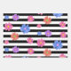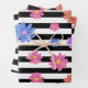 Trendy Floral Black & White Stripes Pattern Wrapping Paper Sheet