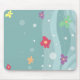 Cool abstract flowers, strings of beading, white dots, and waves of pastel aqua.