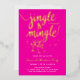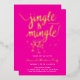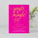 Celebrate the season in style with our trendy Jingle and Mingle invitation, featuring a playful, modern script in bold on a striking hot fuchsia pink background. Perfect for your annual Christmas cocktail party or New Year’s celebration, or even for a Christmas in july party, this invitation is adorned with real gold foil cocktail glass scribbles, adding a touch of sparkle and playfulness. Details are presented in clean, simple white typography for effortless readability. This youthful invitation blends holiday cheer with contemporary elegance, making your guests feel welcome and excited. Ideal for creating memorable seasonal gatherings with a chic, celebratory vibe. Discover the colour variations available!