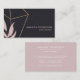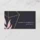 Abstract art business cards featuring black paint strokes with a gold geometric element and blush pink leaves.