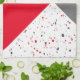 This kitchen towel features a modern red and grey design with a trendy terrazzo pattern in matching shades. Customise the colours by clicking on Edit design.
