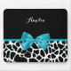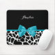 A chic black and white giraffe print mousepad with a trendy aqua blue ribbon tied into a girly bow. Personalise this cute animal print design by adding your name. Flat printed image, not actual bow.
