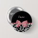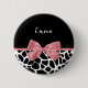 A trendy black and white giraffe print button with a girly rosy pink ribbon tied into a cute bow. Personalise this elegant animal print name tag by adding your name. Flat printed image, not actual bow.