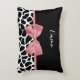 Trendy Giraffe Print Rosy Pink Bow With Name Decorative Cushion