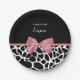Trendy Giraffe Print Rosy Pink Bow With Name Paper Plate