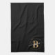 Trendy Girly Black Gold Name Monogram Script Tea Towel