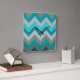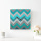Trendy Girly Grey Teal Chevron Zigzag Pattern Square Wall Clock