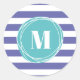 Trendy Girly Stripes Monogram Classic Round Sticker