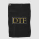 Trendy Gold DIY Monogram/Name, Grey Border, Black Golf Towel