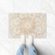 A modern, elegant shining faux gold Flower hand-drawn mandala art, on a white marble abstract image, featuring geometric shapes floral, leaves, pretty sun silhouettes, gold confetti dots, tribal, Aztec geometric elements, on a white marble background. This classy Mandala design will certainly brighten up your day.