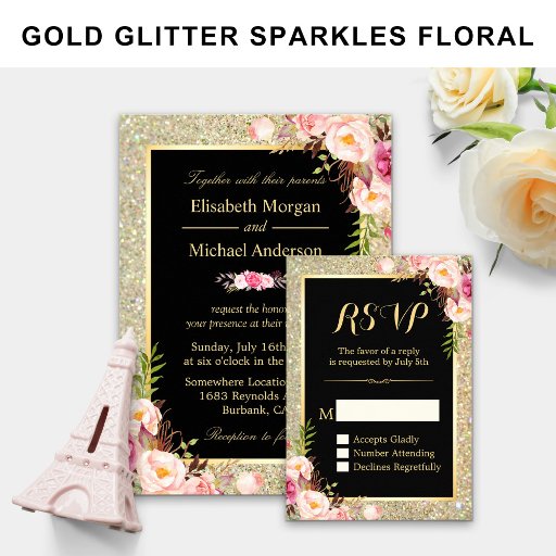 Invitation Suite: Gold Glitter Sparkles FloralDesigned by Scott C.