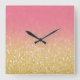 Trendy Gold Pink Ombre Glitter Wall Clock