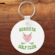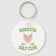 This customisable keychain features two golf clubs in front of a chequered heart with the text "Augusta Golf Club". The text and colours for the graphic are all editable on this design.