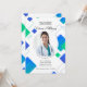 A graduation party invitation with a round photo window and a trendy blue and green abstract design against a white background. (Photo created by nensuria - www.freepik.com). (Vector created by freepik - www.freepik.com). The card is easy to customise with your wording, font, font colour and paper shape options. Not exactly what you're looking for? All our products can be custom designed to meet your needs at no extra charge. Simply contact us at askcottonlamb@gmail.com. Coordinating products available: Just ask us!"