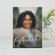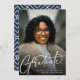 An elegant yet simple script "graduate" in white accentuates a single vertical photo of your grad. This trendy graduation announcement works for both college or high school graduates and is simple enough to let your the photo of the grad shine! The reverse has a detailed white lined pattern with the navy background, which can easily be changed to a colour of your choice.