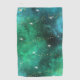 Trendy Green Blue Teal Gold Galaxy Pattern Golf Towel