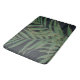 Trendy Green Palm Leaves Gold Strokes Grey Design Bath Mat