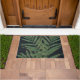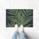 Trendy Green Palm Leaves Gold Strokes Grey Design Doormat