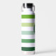 Stripes in different shapes of green. With monogram personalised water bottle in fresh colours. Gift idea for men and women.