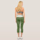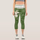 Trendy Green White Stripes White Floral Pattern Capri Leggings