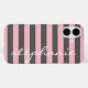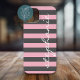 Trendy Grey Blush Pink Striped Pattern Script name Case-Mate iPhone Case
