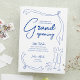 Create unique invitations for your Grand Opening event with this Trendy Blue and White Hand Drawn Business Invitation Design. Featuring handwritten script fonts, hand drawn whimsical ribbon and party graphics with your logo on the back. This fully customisable blue and white business event invitation is perfect to use for the launch party of your boutique, beauty salon, shop or brand!