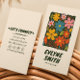 if you looking for a perfect really unique and warm business card, this one is for you and only you. A Vintage retro colourful floral flowers business card. As you see it features a hand drawn groovy floral of boho abstract flower daisies in blue, orange and yellow colours on black background. It has nostalgic seventies vibes and colours and hand written fonts and social media icons. And you can simply and easily customise the name and profession and customisable. By clicking on the personalise button. So grab it and make it yours so you your business is catchy and way different.