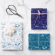 Trendy Hand Drawn Monochrome Blue & White Holiday Wrapping Paper Sheet