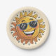 Trendy Happy Yellow Sun with Sunglasses Paper Plate
