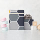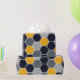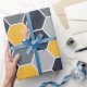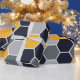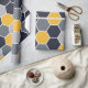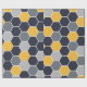 An elegant hexagon pattern in blue, grey and yellow tones.