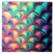 This tile is decorated with a trendy iridescent pattern. It has different colour reflections depending on the angle of view and the light. The abstract pattern uses different shades of colour to create an iridescent effect. This type of tile is often used to add texture and colour to a room, and can be used to create an interesting focal point in a kitchen, bathroom or other living space.