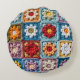 Trendy Knit Granny Square Colourful Floral Pattern Round Cushion