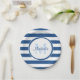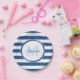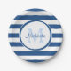 Trendy Large Classic Blue Stripes Monogrammed Name Paper Plate