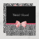 A trendy black and white leopard print bridal shower invitation with a cute pink ribbon bow wrapped like a present. Personalise to invite your guests to attend.