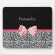 A trendy black and white leopard print mousepad with a cute pink ribbon bow wrapped like a present. Personalise by adding your name. Perfect present for a teen girly girl!