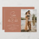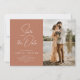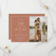 terracotta earthtones white typography design with stylish modern lettering. Our beautiful personalised wedding save the date cards feature a stunning design that complements any wedding theme. The front of the card features a personalised text along with a beautiful image.