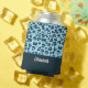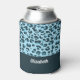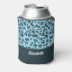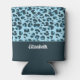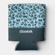 This stylish can cooler features a trendy light blue leopard spots print pattern; easily customisable by adding your name or text on the band on the lower part