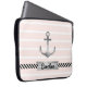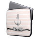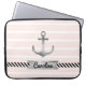 Trendy Light Pink Stripes Nautical Anchor Custom Laptop Sleeve