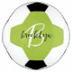 This personalised soccer ball features a monogram and first name in modern black and white script on a trendy lime green background.