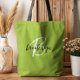 This elegant personalised tote bag features a monogram and first name in modern black and white script on a trendy lime green background.