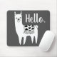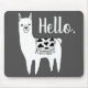 Trendy black and white llama sketch and dark grey background with the word "Hello".