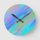 Trendy luxury green blue purple faux holographic round clock