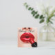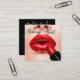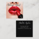 A trendy beauty and fashion business card with image of fashion model holding lipstick in this unique two side editable business card template.