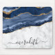 Modern Glam Navy Blue Gold Glitter Sparkle Agate Geode Marble Elegant Feminine Monogram Script Name Mouse Pad